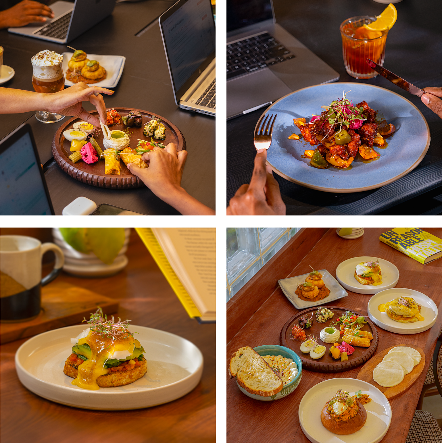 Private meeting rooms with seamless tech, adjustable lighting, tables built for longer, more comfortable meetings and a menu designed to serve real food! From Turkish breakfasts and eggs to comforting South and North Indian meals, all plated for ease and served hot!